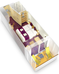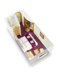 Vo všetkých kajutách sa nachádza regulovateľná klimatizácia, oddelené postele spojiteľné do jednej dvojitej, safe, kúpeľňa so sprchou, sušič na vlasy, telefón, Tv s plochou obrazovkou.