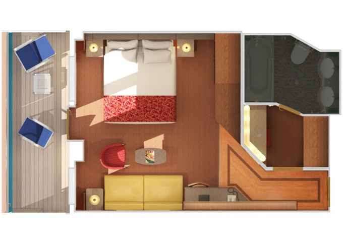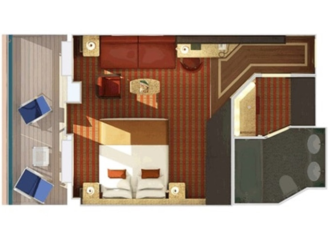 | 6S - Vonkajšia kajuta Cloud 9 Spa Walkaway 20 m². Neotvárateľné okno / výhľad na chodbu. 10. paluba vpredu. Voľný vstup do Cloud 9 Spa a balíček Cloud 9 Spa. | 2 790 € 1 395 € za osobu |