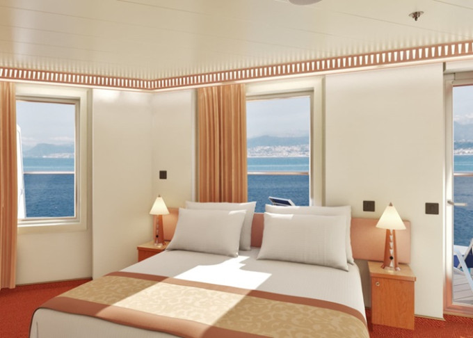 | GS - Grand Suite 32 m² + balkón 8 m². 7. paluba stred. Výhody Suite. | 5 308 € 2 654 € za osobu |