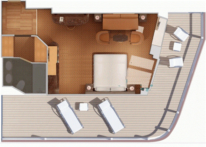 ES - Grand Suite (extended) cca 51 m² vrátane balkóna. 5. paluba vpredu. 3 464 € 1 732 € za osobu