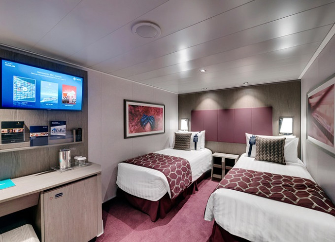 - Ubytovanie v plne vybavenej kajute: vlastná kúpeľňa so sprchou a WC, interaktívna TV, telefón, safe, sušič na vlasy, regulovateľná klimatizácia, minibar (za poplatok). Pripojenie na internet cez Wi-fi (za poplatok)