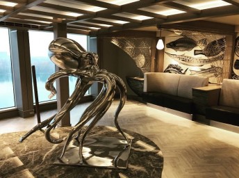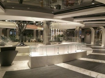 "360° Waterfront boardwalk" – promenáda okolo celej lode, ktorej súčasťou je prechádzka cez priehľadnú podlahu pre ešte väčší zážitok z plavby.