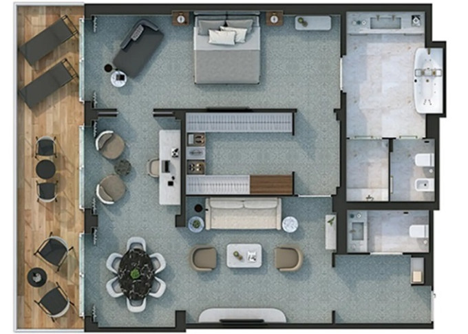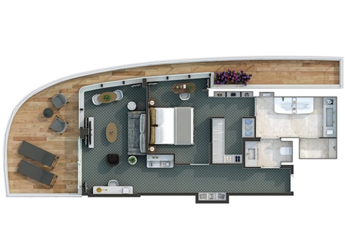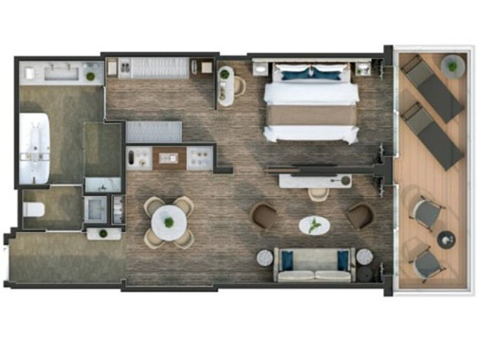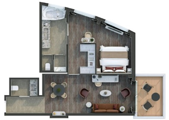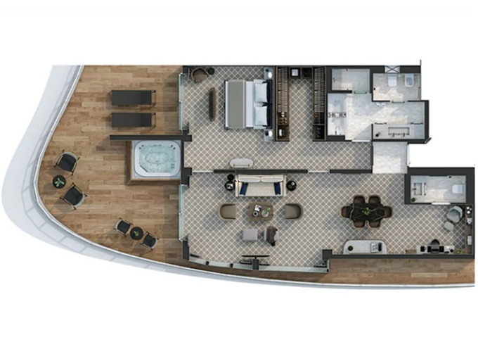 O1 - Owner's 1 Suite 98 m² (vrátane balkóna 16 m²). Spálňa, oddelená obývacia a jedálenská časť, kúpeľňa s vírivkou. 8. paluba stred. Max 3 osoby. 83 400 € 83 400 € za osobu