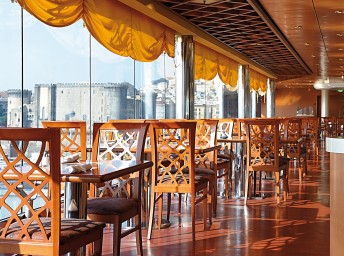 Le Maxim´s (6. paluba) s kapacitou 714 hostí. Otvorená pre večere. Pri večeri je zasadací poriadok a turnusy o 19:00 a 21:30.
