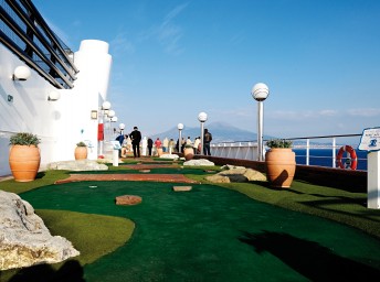 - Športové aktivity na otvorených palubách (jogging, basketbal, futbal, tenis), bazény a ležadlá