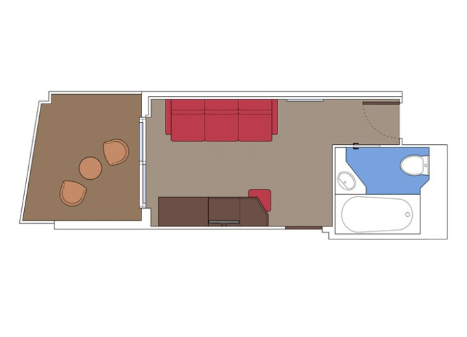 - Ubytovanie v plne vybavenej kajute: vlastná kúpeľňa so sprchou a WC, interaktívna TV, telefón, safe, sušič na vlasy, regulovateľná klimatizácia, minibar (za poplatok). Pripojenie na internet cez Wi-fi (za poplatok)