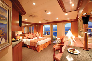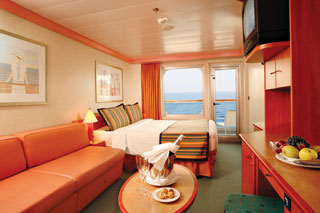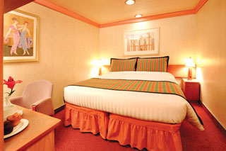- Ubytovanie v kajute vybranej kategórie. Základné vybavenie: kúpeľňa s WC a sprchovacím kútom, 2 lôžka spojiteľné do manželskej postele, skrine, nočné stolíky, toaletný stolík a stolička, nastaviteľná klimatizácia, interaktívna satelitná TV s plochou obrazovkou, trezor, sušič na vlasy, uteráky a posteľné prádlo, Wi-Fi pripojenie (za poplatok), 24/7 kajutová služba (za poplatok).