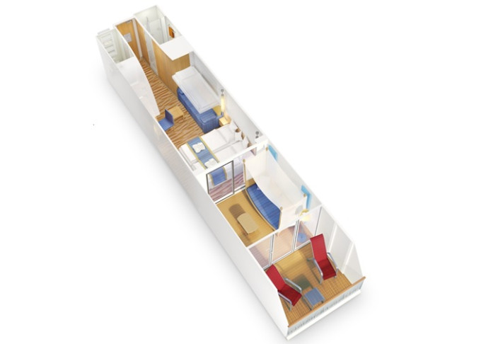 | VD - Kajuta s verandou Komfort PREMIUM od 20 m² + balkón od 6 m². Oddelené WC. 5,9,10,11. paluba. Max 4 osoby. Cenový model Premium. | 7 990 € 3 995 € za osobu |