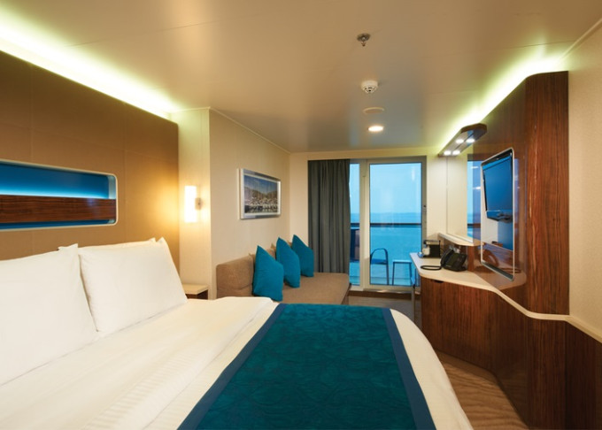 B1 - Kajuta s balkónom Aft-facing od 23 m² / balkón od 5 m². 9. až 14. paluba. Max 2-3 osoby. 2 618 € 1 309 € za osobu