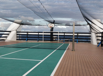 - Športové aktivity na otvorených palubách (jogging, basketbal, futbal, tenis), bazény a ležadlá