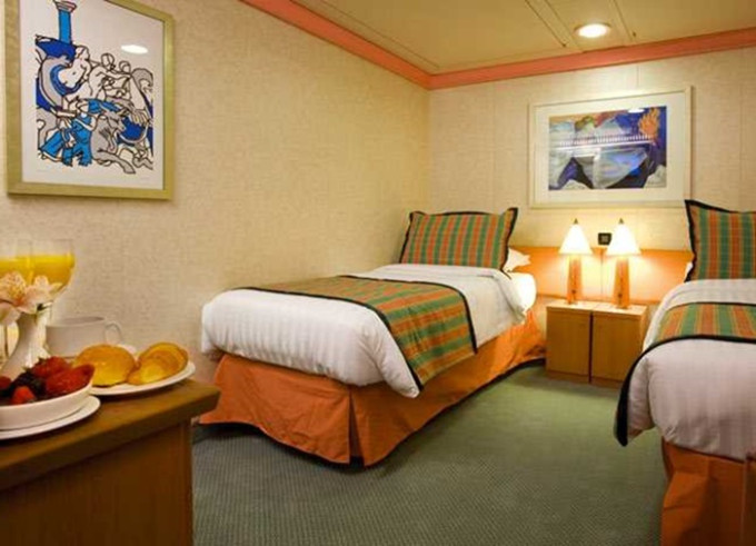 - Ubytovanie v kajute vybranej kategórie. Základné vybavenie: kúpeľňa s WC a sprchovacím kútom, 2 lôžka spojiteľné do manželskej postele, skrine, nočné stolíky, toaletný stolík a stolička, nastaviteľná klimatizácia, interaktívna satelitná TV s plochou obrazovkou, trezor, sušič na vlasy, uteráky a posteľné prádlo, Wi-Fi pripojenie (za poplatok), 24/7 kajutová služba (za poplatok).