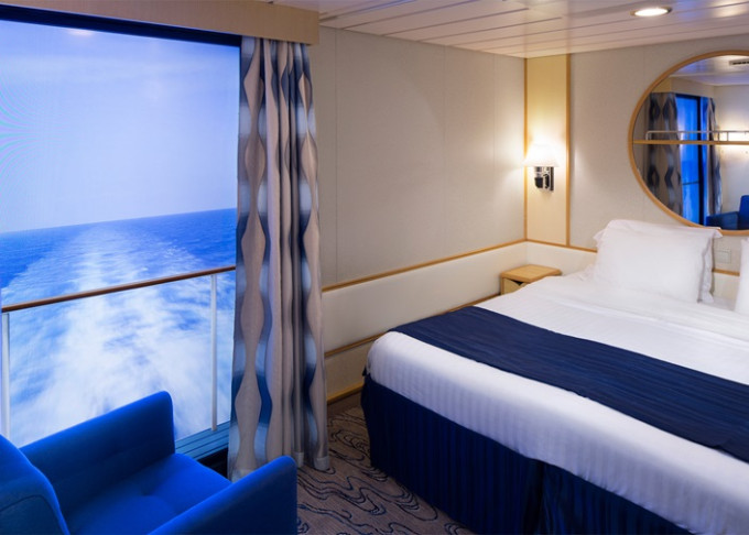 2U - Vnútorná kajuta s virtuálnym balkónom 15 m². Obrazovka veľkosti balkónových dverí s premietaným výhľadom. Max 2 osoby. 1 959 € 653 € za osobu
