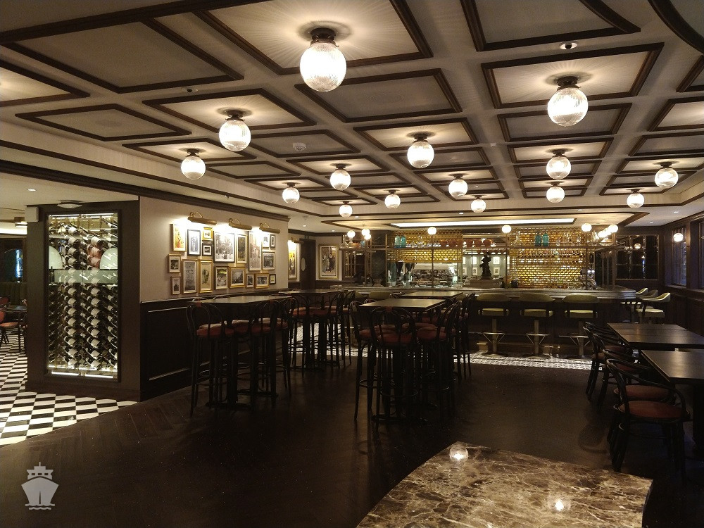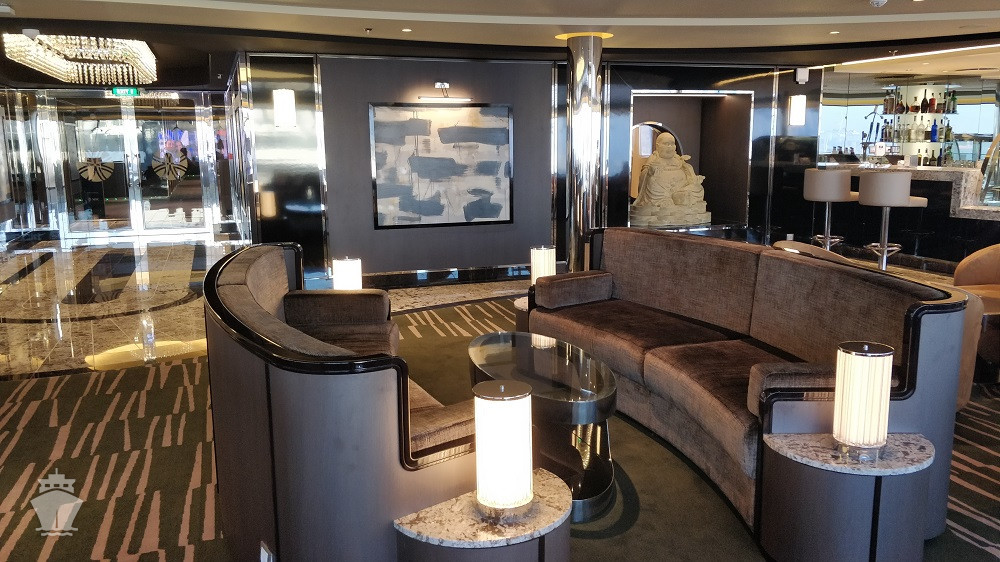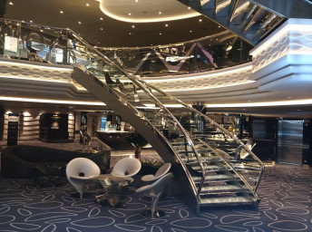 - Dvojúrovňová promenáda s reštauráciami, barmi a duty-free obchodmi, zastrešená 480 m² LED “digitálnou oblohou” s vizuálnymi show