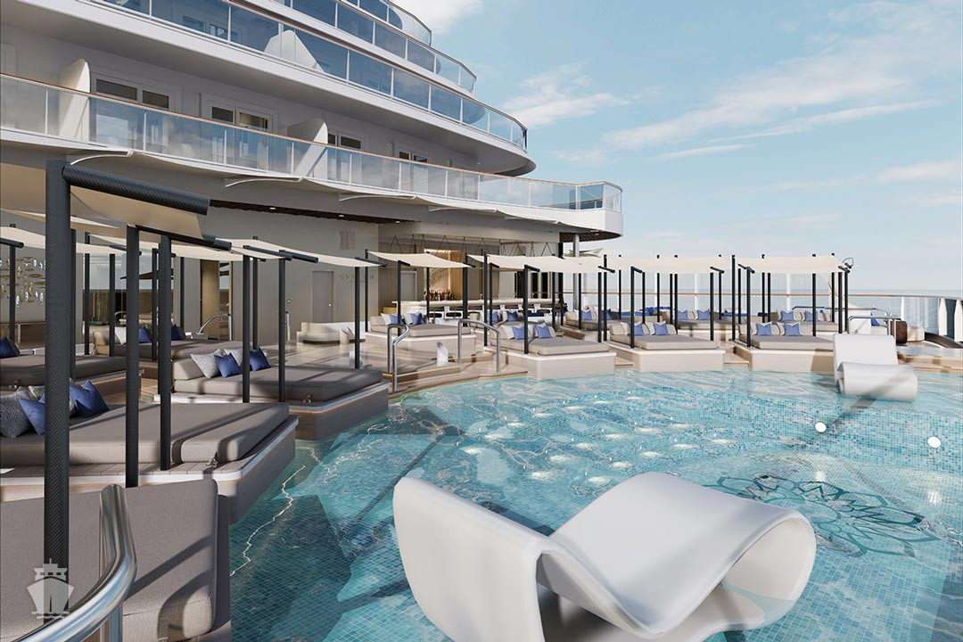 Ocean Residence - Retreat Residence Suita 63 m² + Terasa s vírivkou a sedením 14 m² / 7. paluba: 18 m². Spálňa s obývacou a jedálenskou časťou, šatník. Koktailová súprava, minibar, kávovar, vodná kanvica, ďalekohľad, sejf, mramorová kúpeľňa s vaňou a sprchou, extra wc. Taška Technogym Case Kit. Fľaša šampanského na privítanie. Služby osobného majordóma. Maximálna kapacita 3 dospelí alebo 2 dospelí + 2 deti pod 18 rokov. 81 700 € 20 425 € za osobu