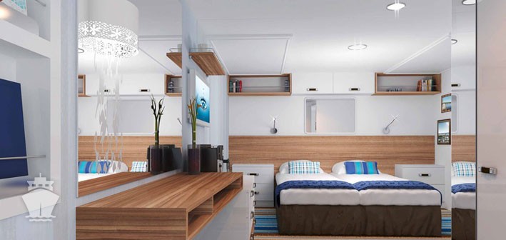 | BAUS - PLUS Kajuta s balkónom 17 m² + balkón 5 m². 6. paluba. Max 4 osoby. Cenový model PLUS. | 2 680 € 670 € za osobu |