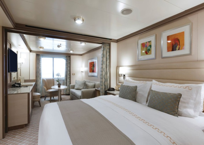 | VI - Vista Suite s oknom 29 m². Panoramatické neotvárateľné okno. Spálňa s oddeliteľnou obývacou časťou. 4. paluba. Max 3 osoby. | 7 500 € 7 500 € za osobu |